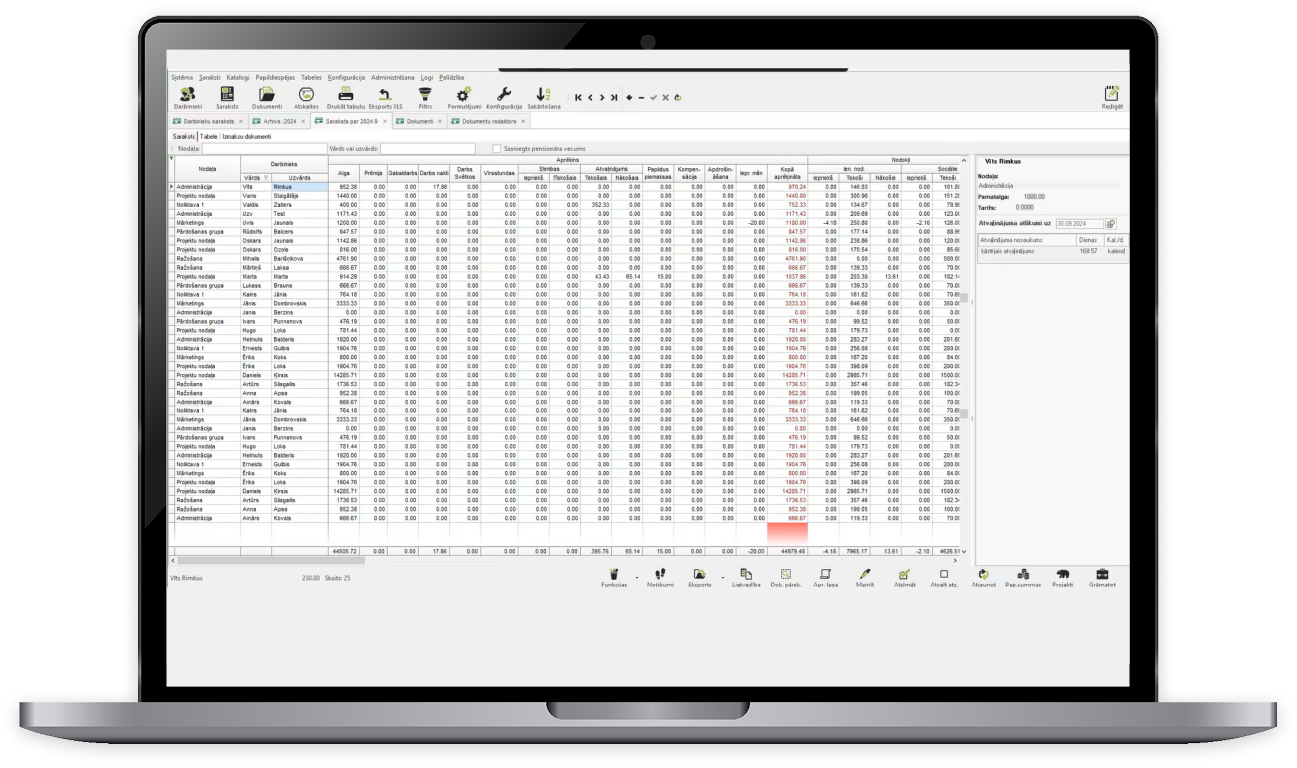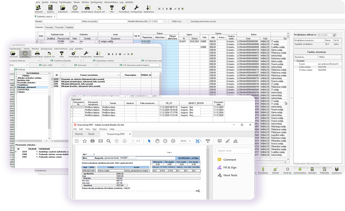 Darbinieku personīgā informācija, darba līgumi, informācija par amatu, nodokļu statusi un konti. Viss svarīgais vienuviet!