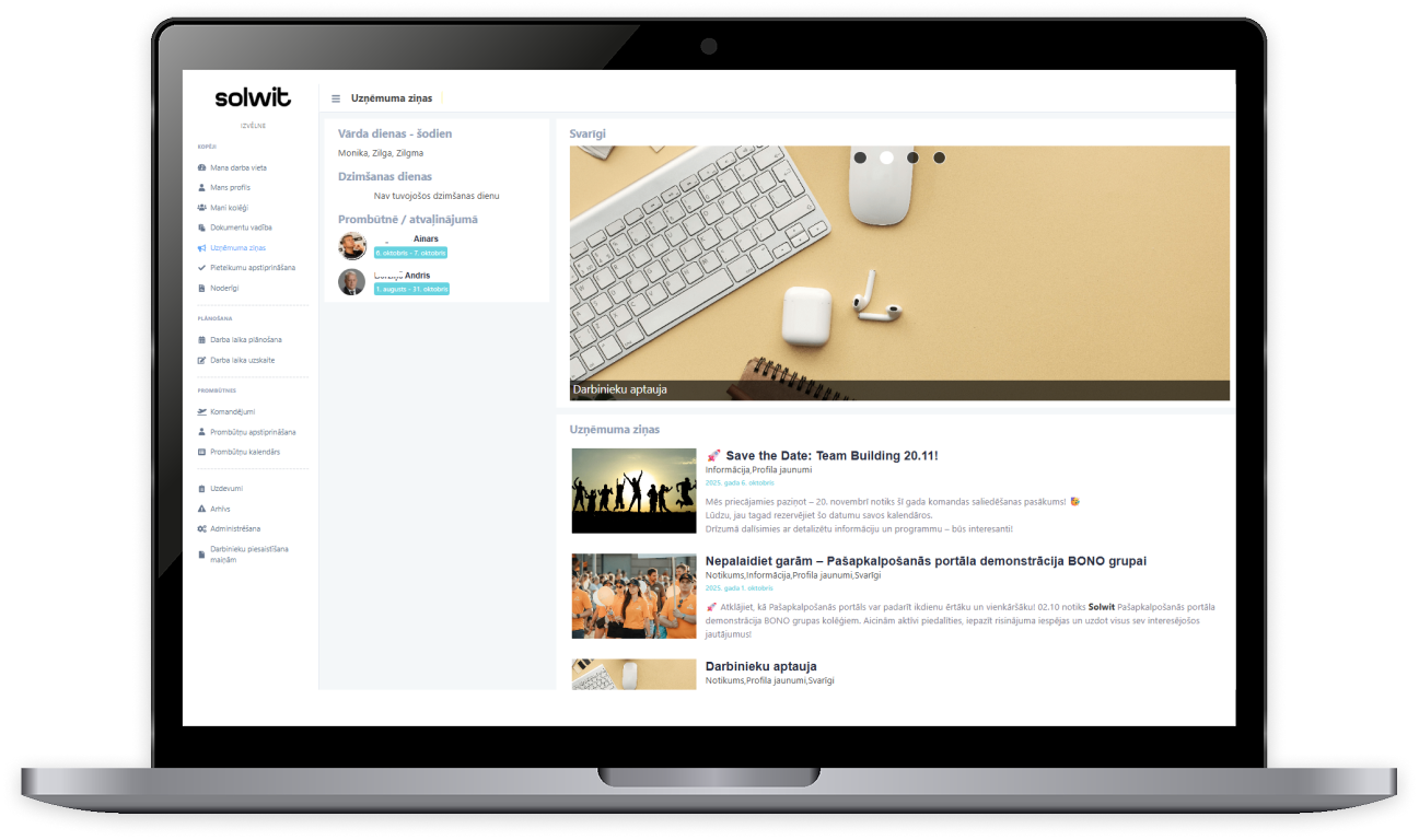 Darbiniekiem ir ērtā piekļuve savām algas lapiņām un citai informācijai, kad iegādāts sistēmu komplekts, ieskaitot sistēmu Solwit personāls.