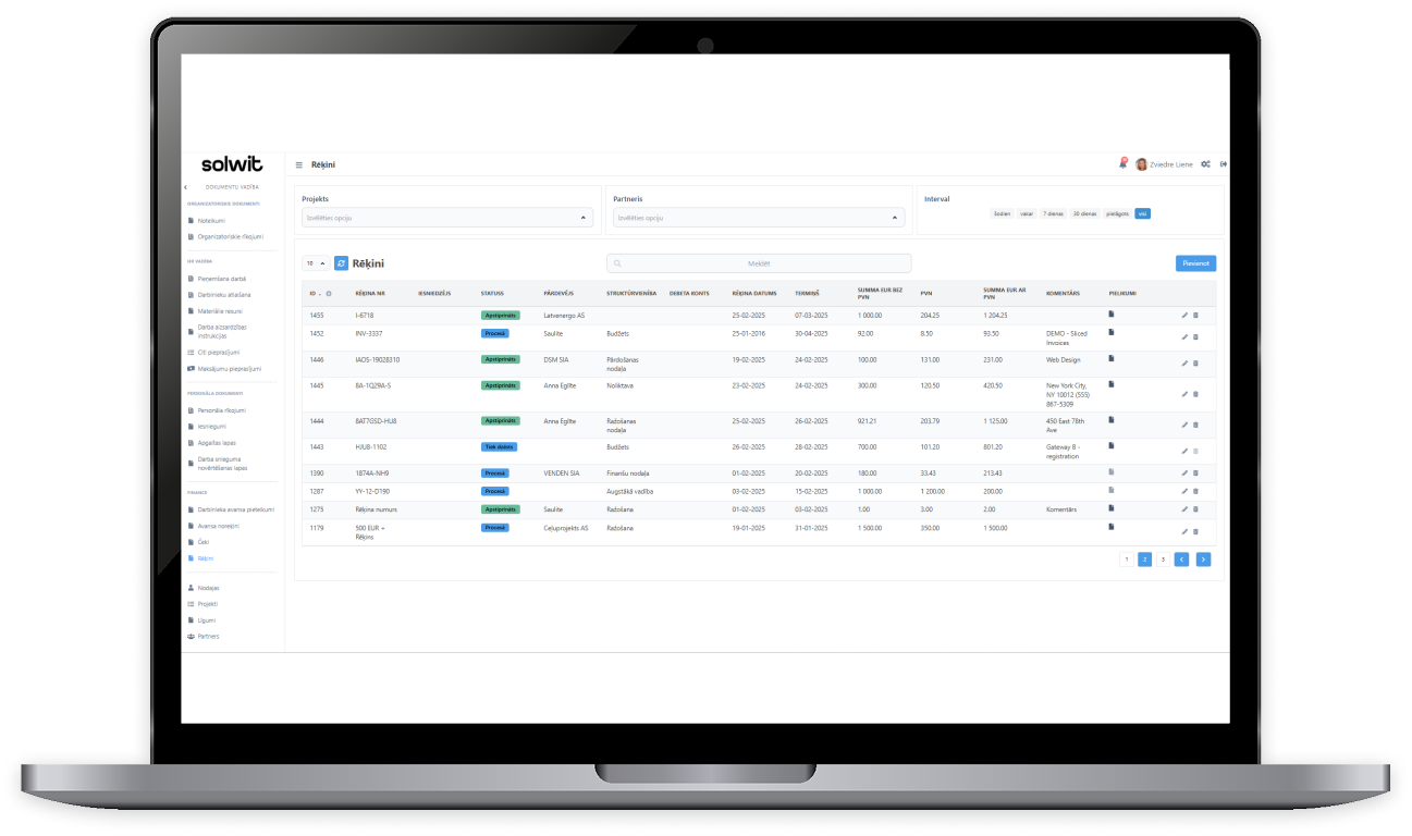 Visa veida darbinieku pieprasījumu kopsavilkums. Maksājumu pieprasījumi un citi pieprasījumi? Vienkārši – pārskati un pārvaldi tos digitāli. Turklāt, ar iespēju caurskatīt, komentēt, iepazīties ar pielikumu, apstiprināt vai noraidīt un nodod grāmatvedībai uz apmaksu. Visi pieteikumi ir pieejami vienuviet ar iespēju tos filtrēt pēc statusa vai veida.